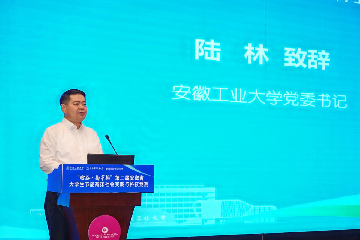 陆林代表大赛组委会和学校党委、行政向各位领导专家、参赛师生来校共襄赛事盛举表示欢迎,向全国大学生节能减排社会实践与科技竞赛委员会、安徽省科学技术协会、安徽省教育厅对我校的信任指导表示感谢。陆林指出,习近平总书记强调“把建设美丽中国摆在强国建设、民族复兴的突出位置”,他号召大家以本次大赛为契机,激发起更多同学对伟大祖国的热爱、对科创活动的兴趣、对美好生活的向往,培养攻坚克难、破局求变的创新精神和节能减排、环保低碳的良好习惯,为国家科技创新事业贡献青春力量。