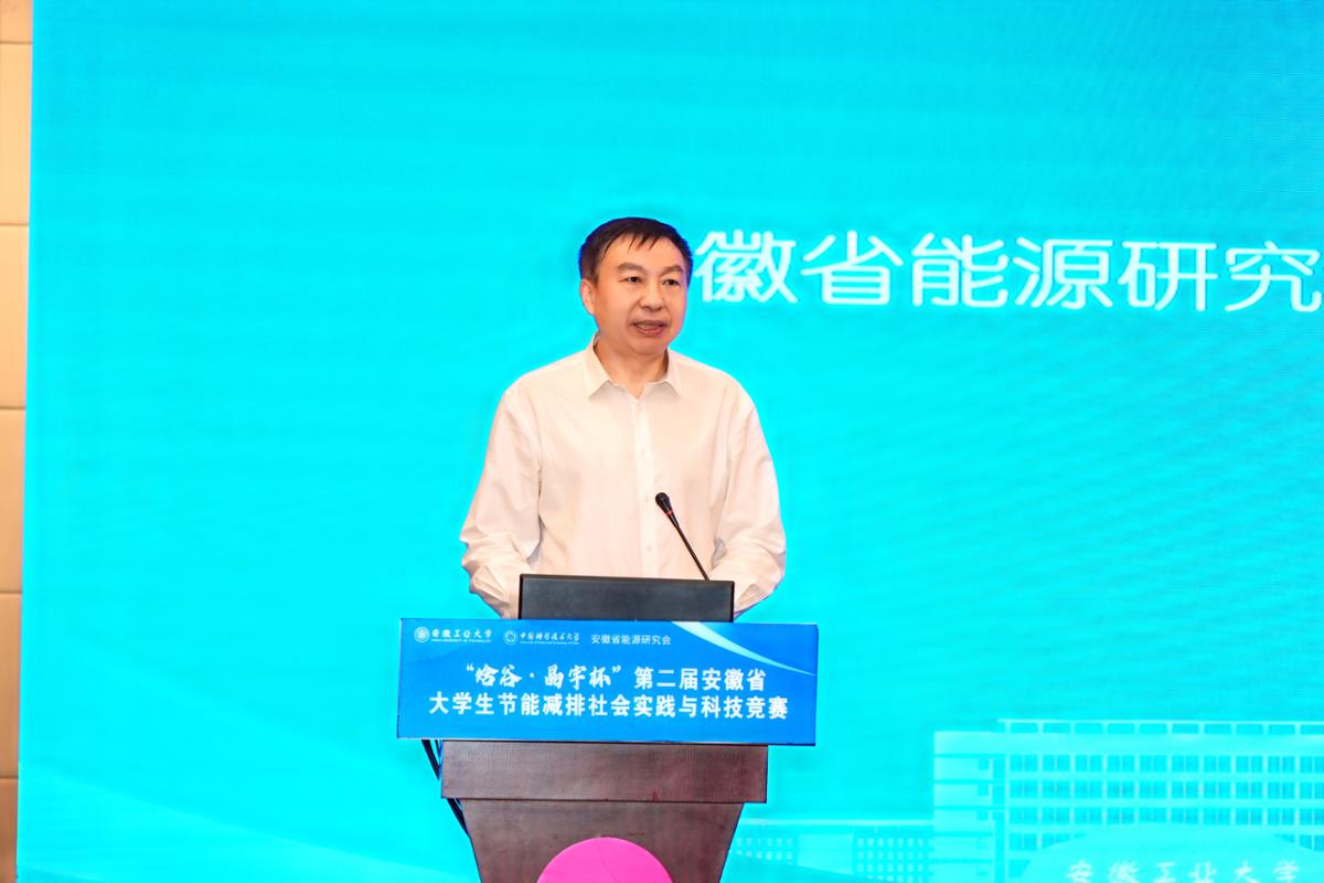 舒歌群代表安徽省能源研究会致辞,对莅临现场的各位专家学者表示感谢,对全省33所高校的178支参赛团队表示欢迎。他指出,实现碳达峰碳中和是以习近平同志为核心的党中央统筹国内国际两个大局作出的重大战略决策,现在正是当代青年大展身手的黄金时期,希望各位选手像皖南青弋江般奔涌向前——既有劈开群山的勇毅,又有润泽万物的胸怀,更有“九曲回环终向东”的科创定力。