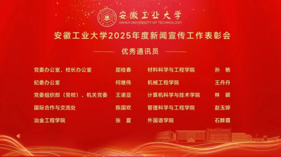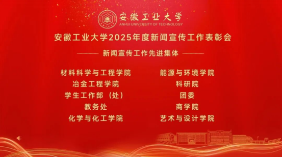 4月9日上午,学校举行2025年度新闻宣传工作表彰会。冶金工程学院凭借过去一年在新闻宣传工作中的突出表现和显著成效,荣获“新闻宣传工作先进集体”称号!这份沉甸甸的荣誉,是对我院过去一年新闻宣传工作全方位、高质量发展的高度肯定。学院党委始终将宣传工作摆在突出位置,坚持与学院中心工作同频共振,构建起全方位、多层次、宽领域的宣传格局。